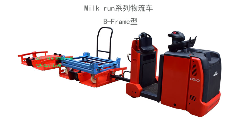 B-Frame物流車是Milk run物流車可循環物料配送系統中的一種車型,因具有兩側任意方向裝載DOLLY手推小車的特性,所以操作更簡單、實用,還具有體積小巧,轉向靈活等特點,特別適用于室內平整路面進行物料的配送方式。